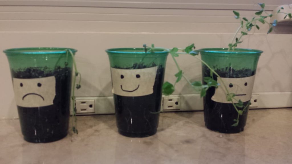 My experiment with bean seeds. Good words created more growth. Bad words created wilted plants.